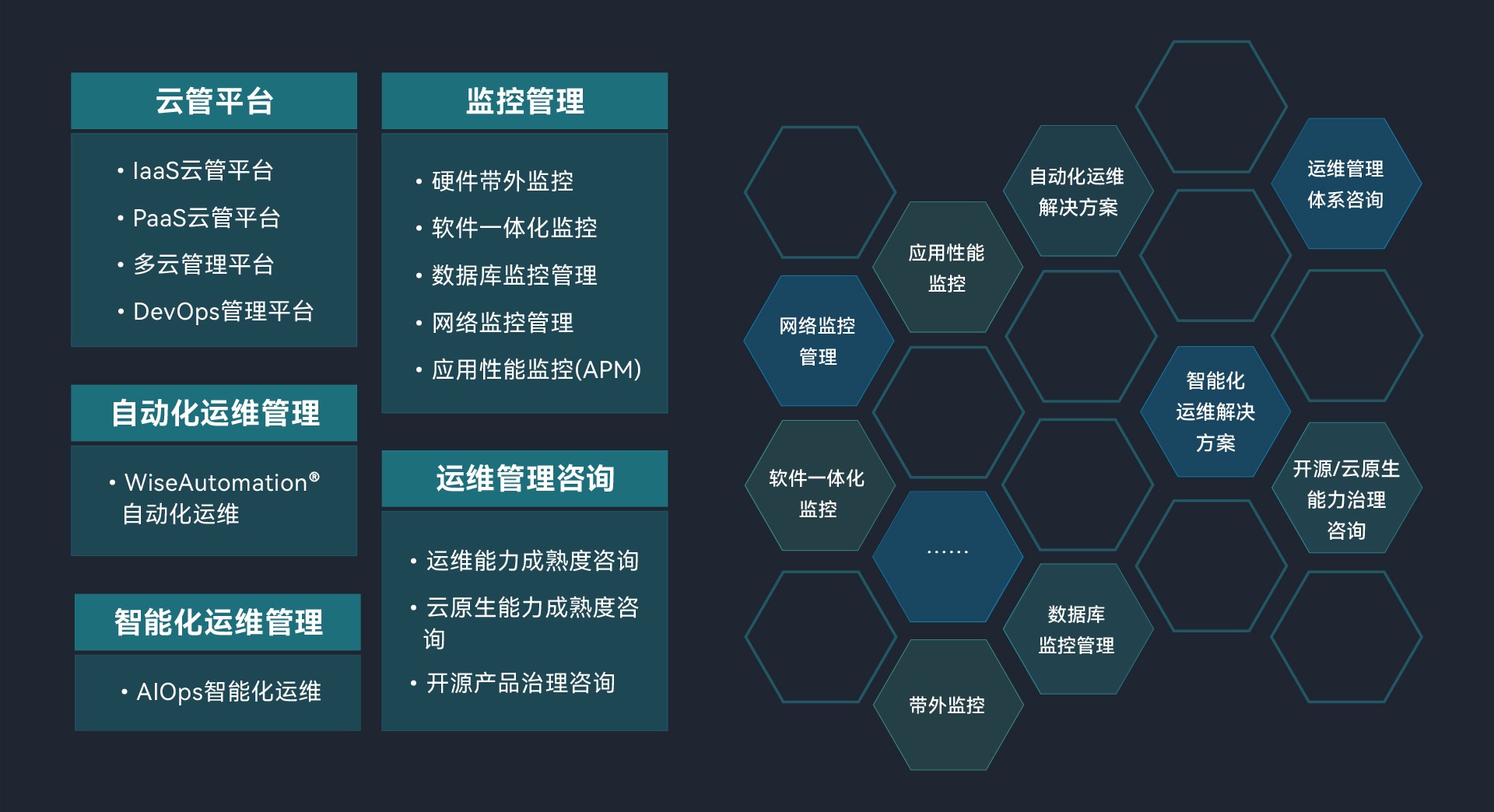 星空·体育(xingkong.com)官方网站 在运维管理产品领域提供硬件、软件监控、自动化运维、智能化运维和安全管理等产品解决方案,帮助客户实现对基础设施、应用程序和服务的全方位监控、反馈和管理。同时,星空·体育(xingkong.com)官方网站 在运维支撑平台领域提供云、大数据和智能平台中台解决方案,为客户打造基础设施管理平台,确保客户在各类运维需求下,都能够得到充分的支撑和保障。
