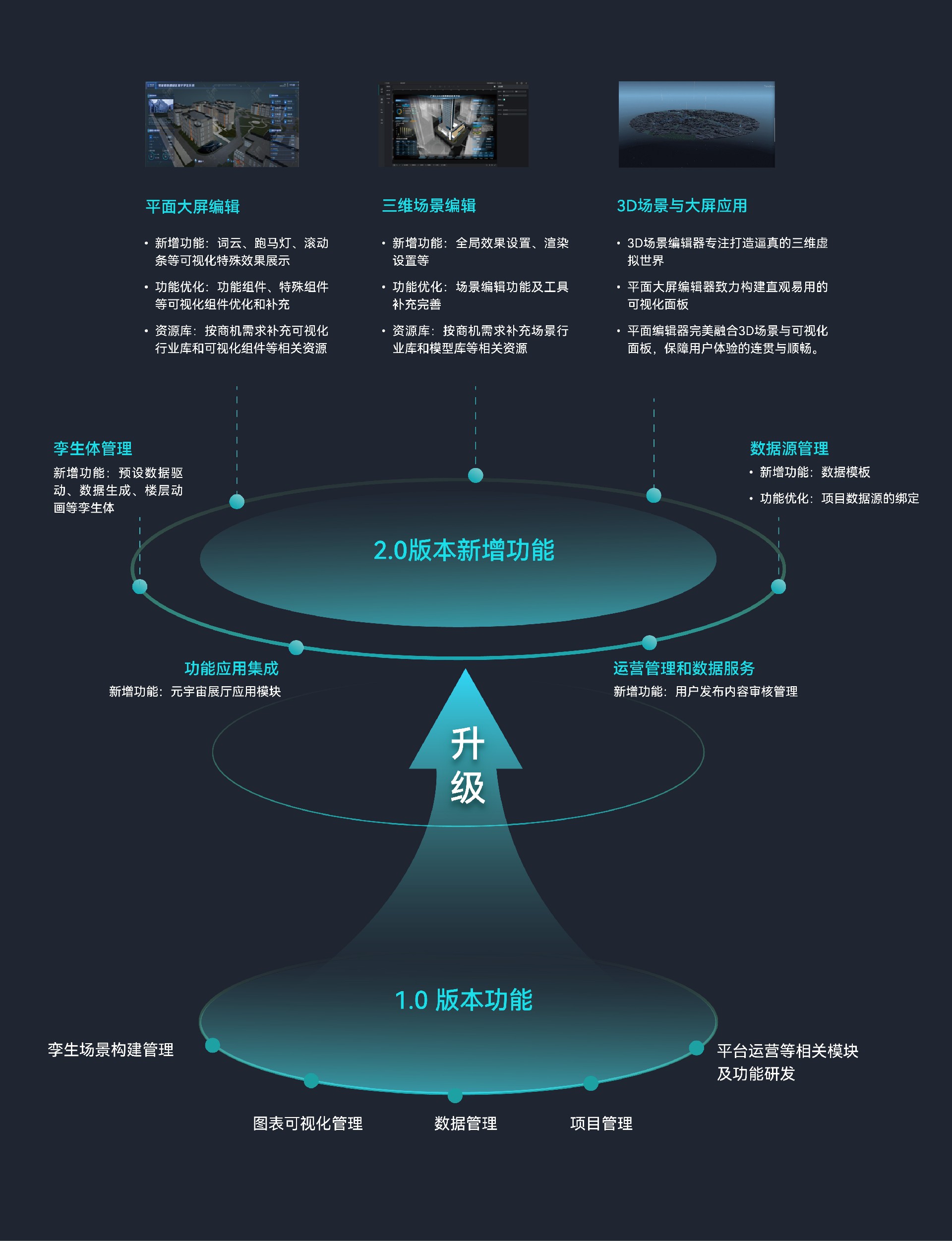 2023年,星空·体育(xingkong.com)官方网站 对该平台在孪生体管理、3D场景与大屏应用、数据源管理等七大模块进行了功能升级。